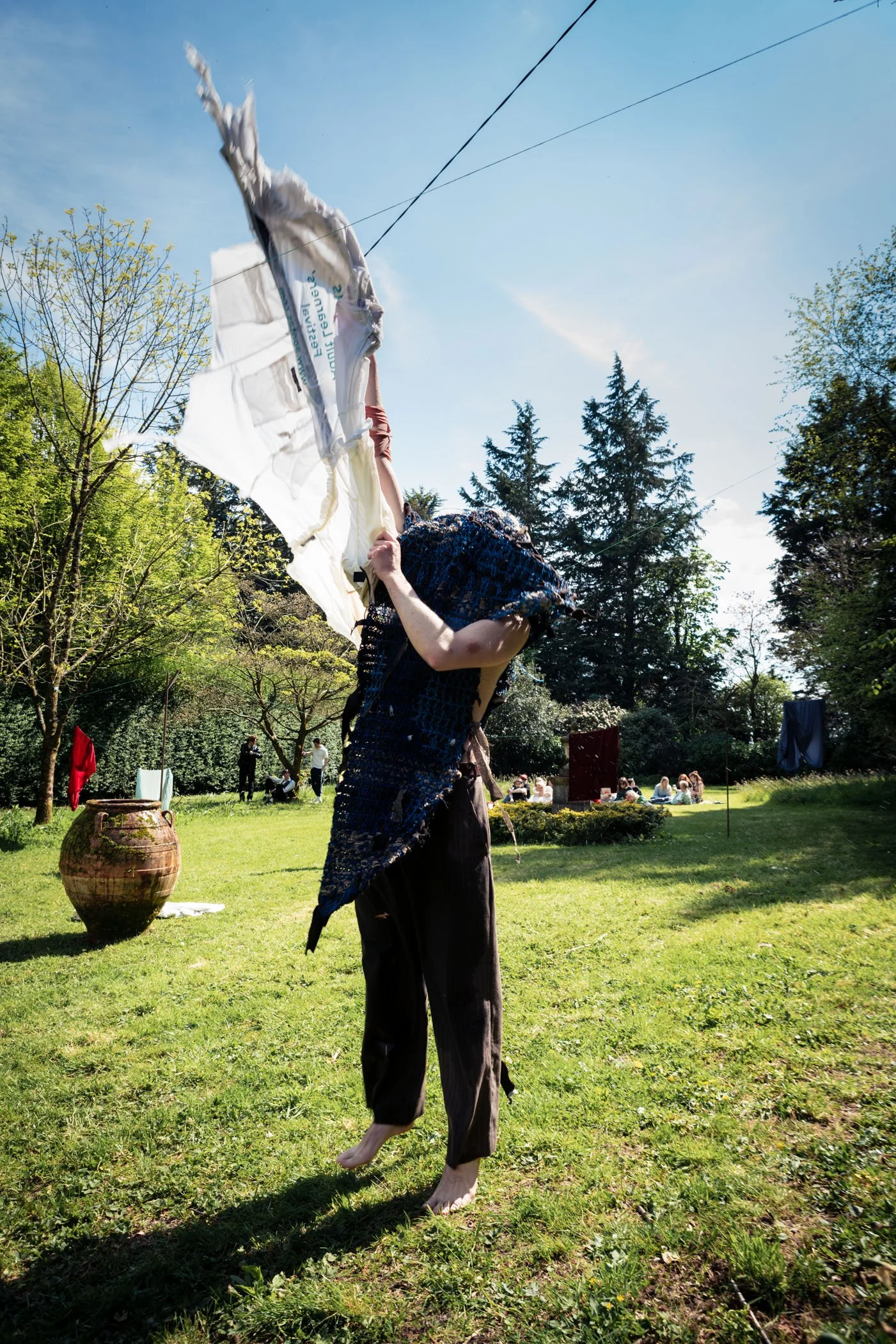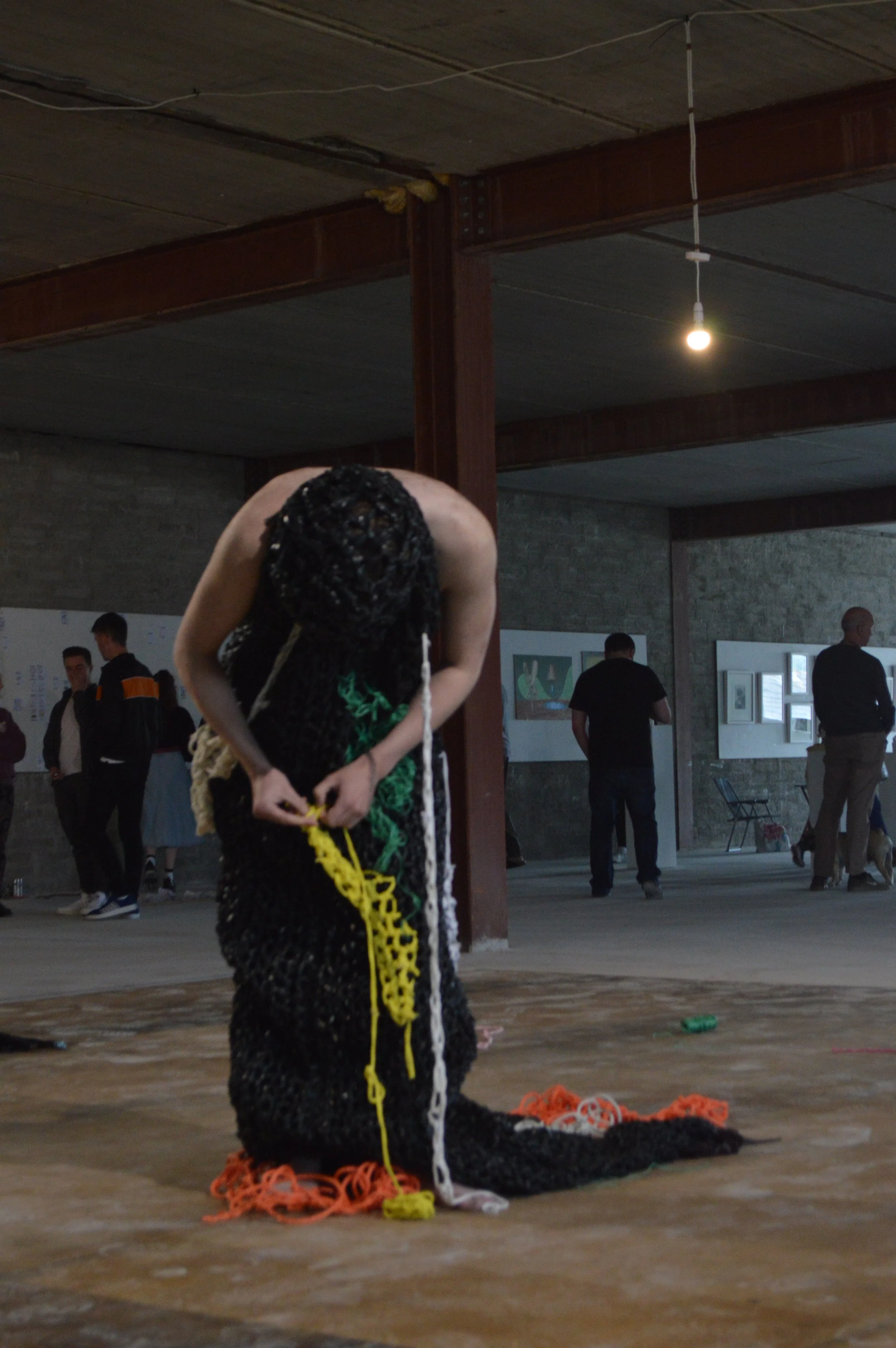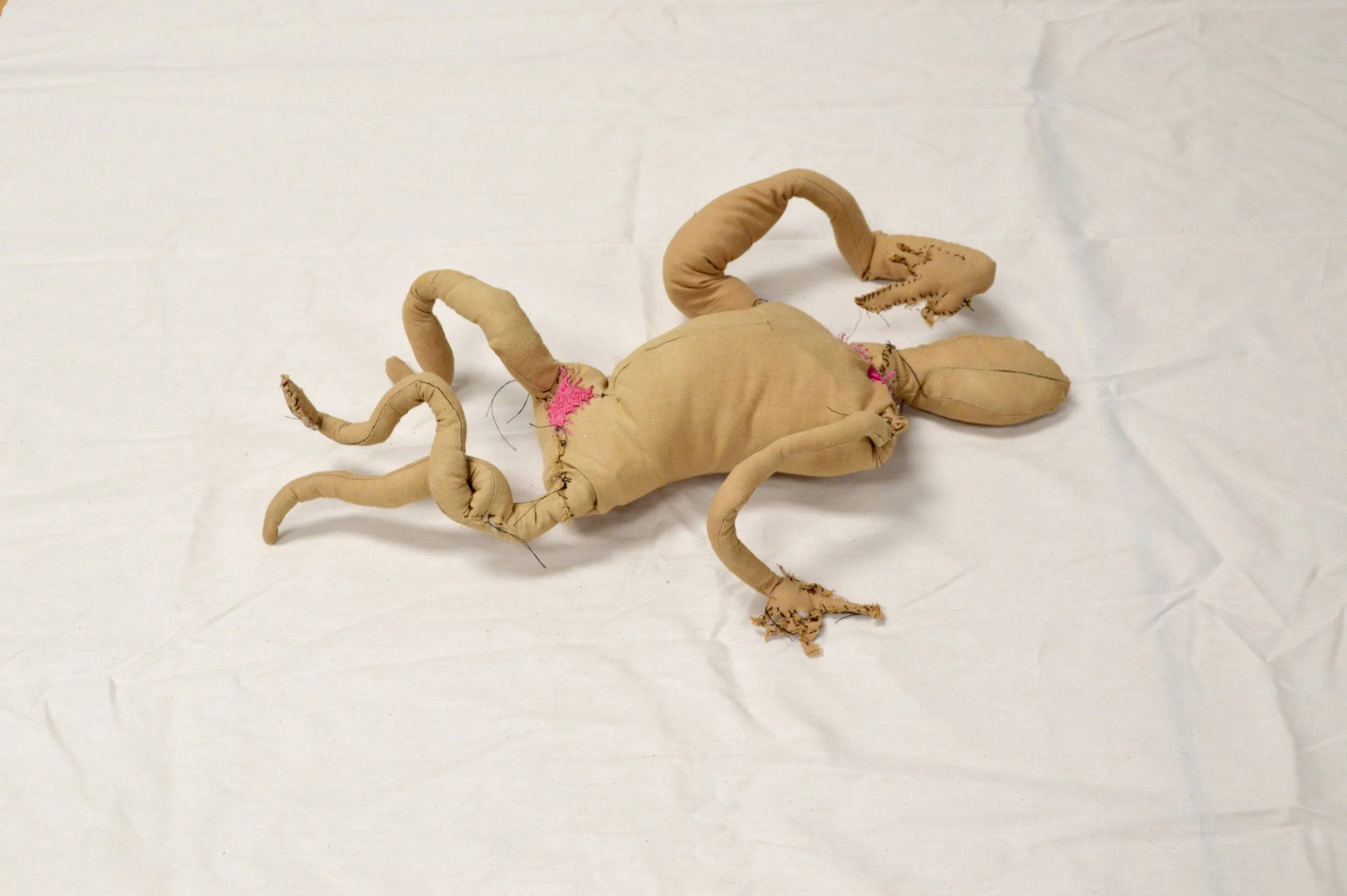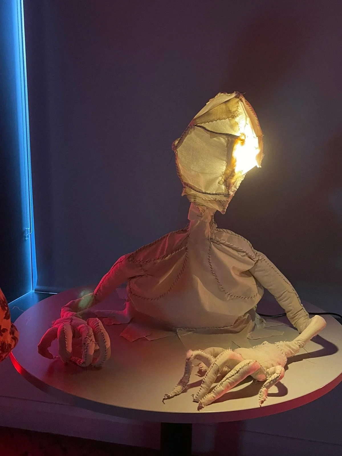 cotton canvas, aluminium wire, stuffing, cotton thread, wooden pole. spotlight